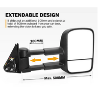 EXTENDED TOWING MIRRORS ELECTRIC TO SUIT NISSAN NAVARA NP300 D23 2015 - 2022