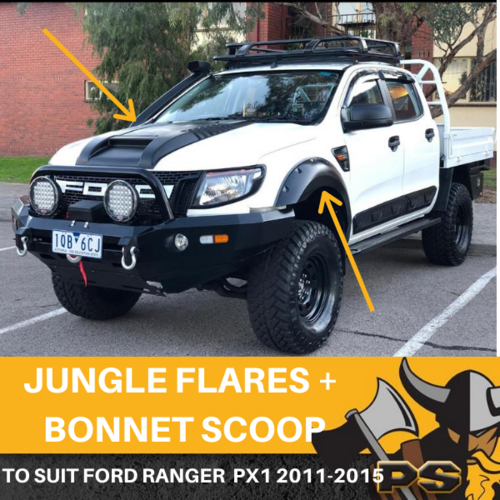 FENDER JUNGLE FLARES + BONNET SCOOP COMBO FORD RANGER PX1 2011-2015 4 PIECE Description