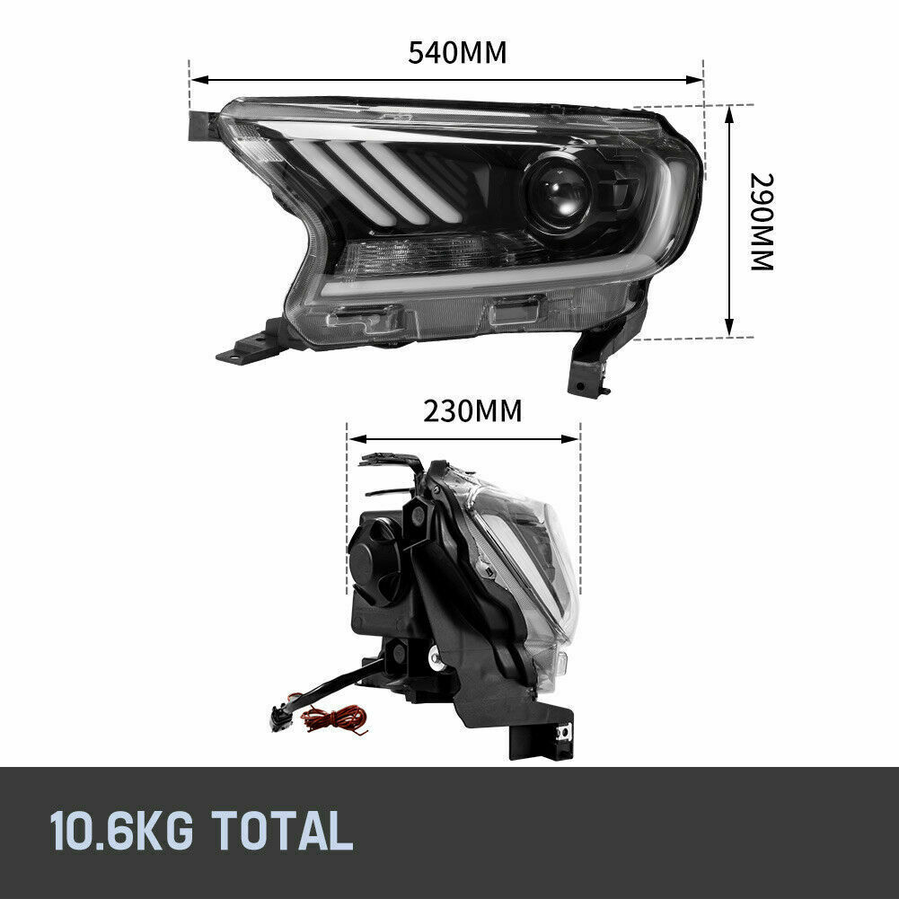 LED Mustang Head lights fit Ford Ranger XL XLT XLS Wildtrak T7 PX2 PX3 2015-2021 Description